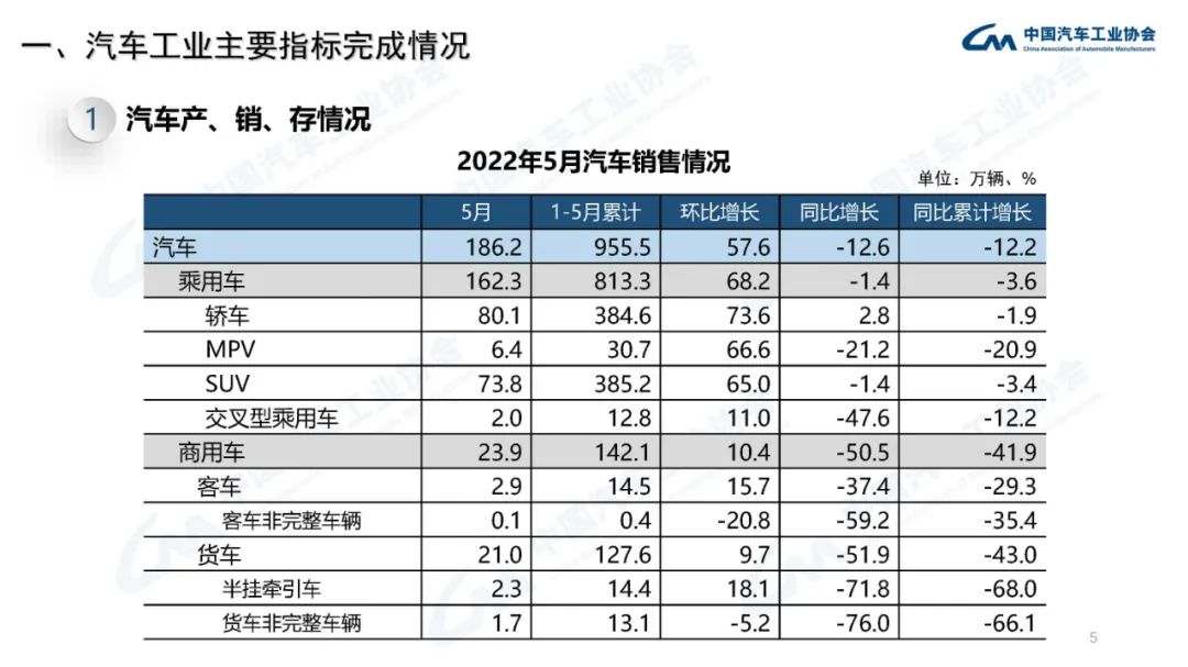 產業(yè)運行 | 2022年5月汽車工業(yè)經濟運行情況